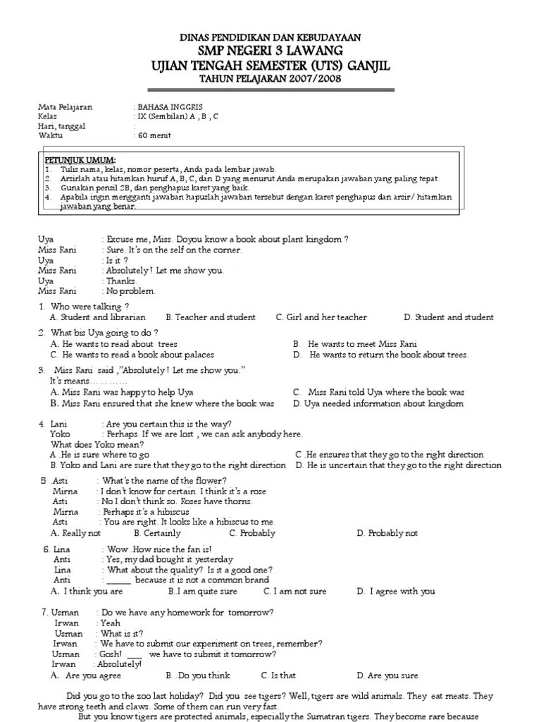 Soal Uts Bahasa Inggris Kelas 9 Semester 1 / Contoh Soal Uts Kelas Ix Semester Ganjil Bahasa Inggris Dimensi Bahasa Inggris / Pembahasan latihan soal uts pts (penilaian tengah semester) bahasa inggris siswa kelas 9 semester 1 2021.